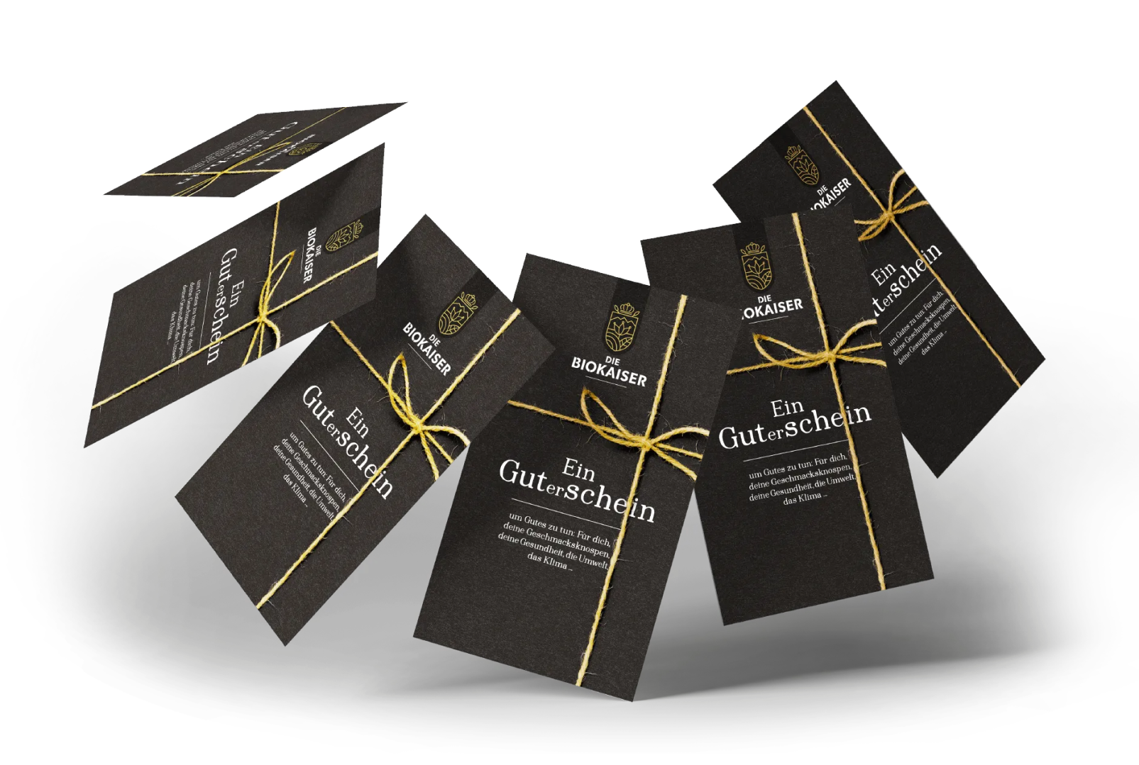 BIOKAISER Gutscheine sind immer eine gute Idee: für die Geschmacksknospen, die Gesundheit, die Umwelt und das Klima...