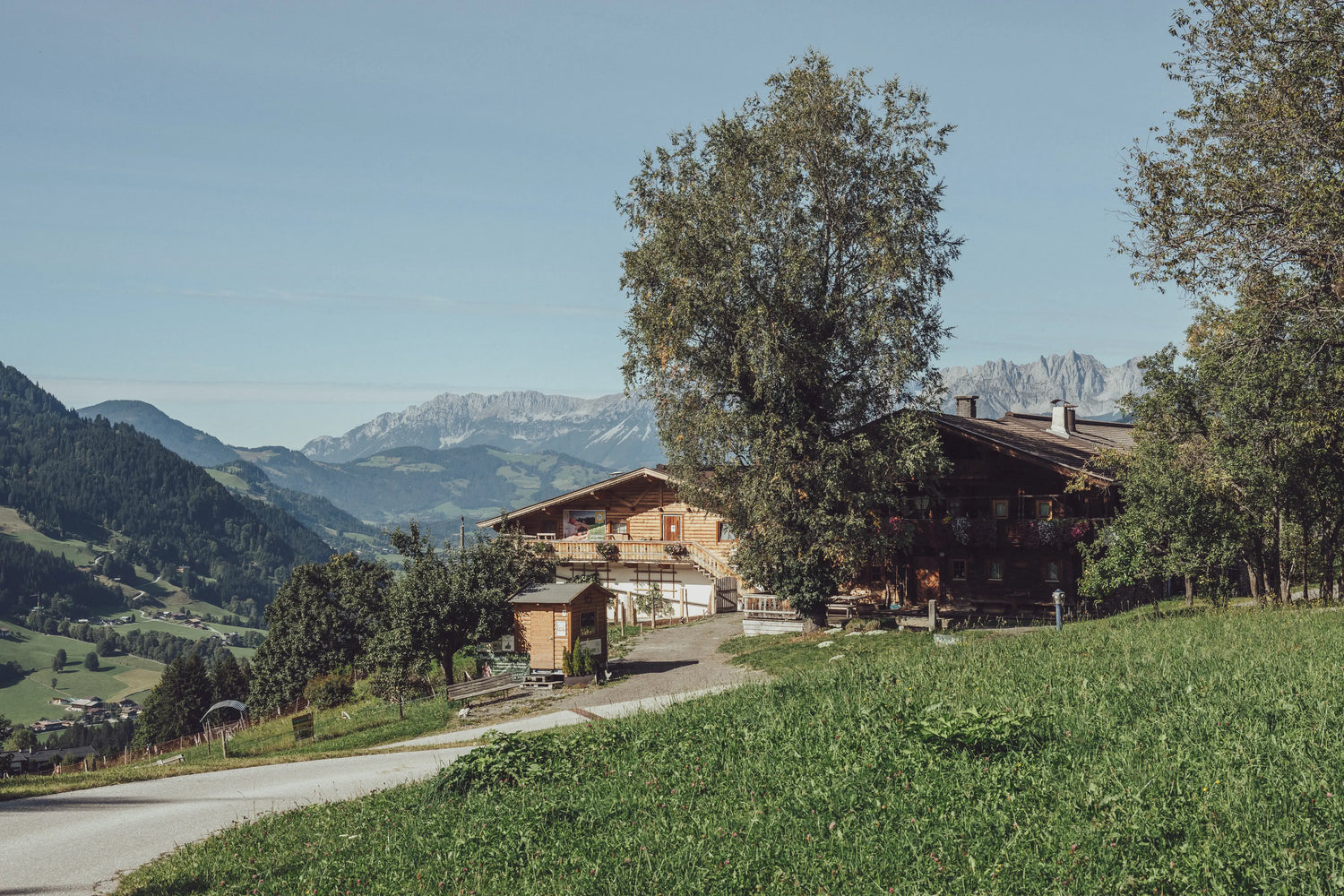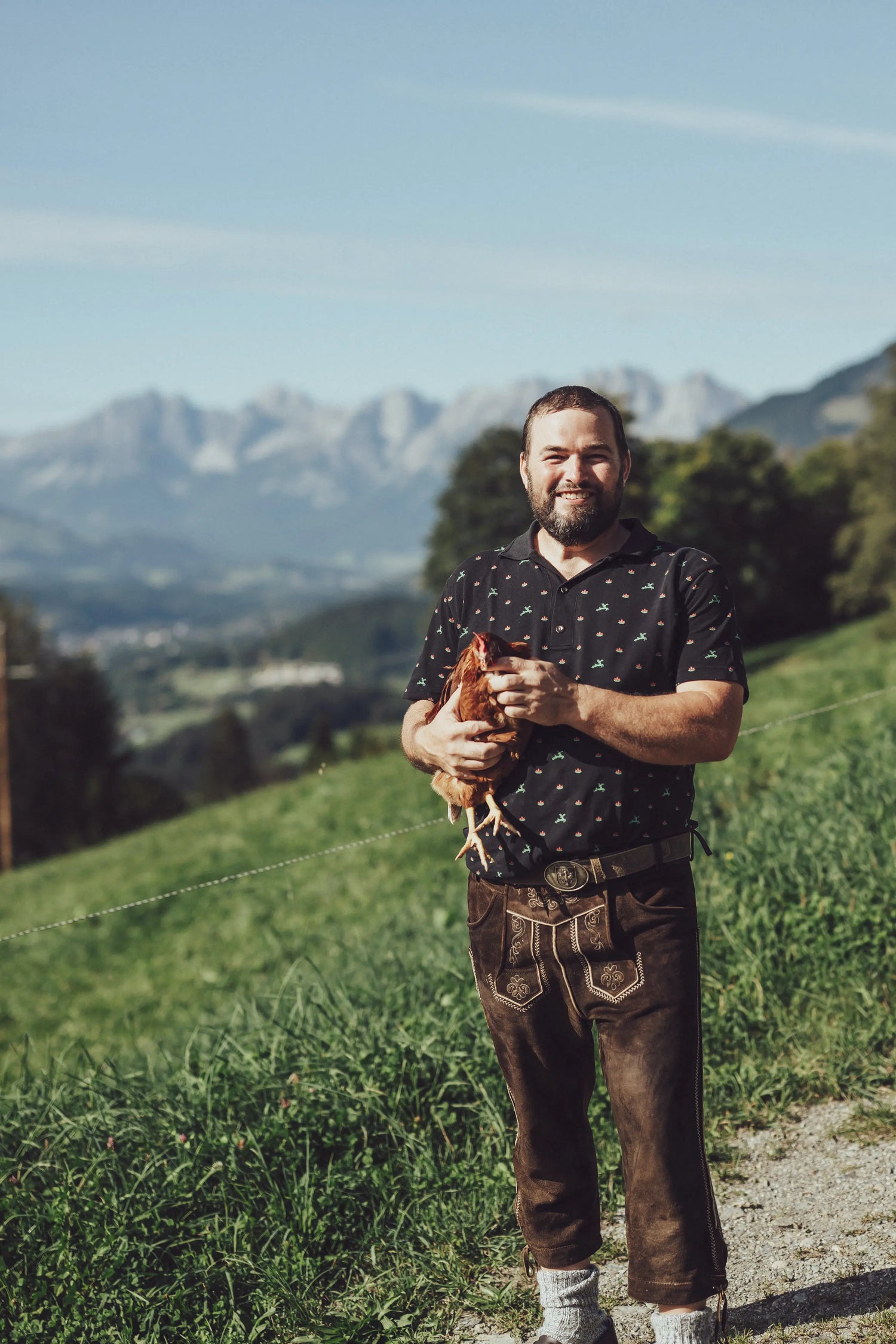 Der Hof liegt in der Kochau in Aurach – umgeben von Wiesen, Wäldern und den Kitzbüheler Alpen. Das Klima in dieser Höhenlage prägt die Arbeit im Jahreslauf und gibt das Tempo vor. Hier werden Bio‑Freilandeier, Geflügel und Nudeln erzeugt; erhältlich ab Hof und über regionale Partner.