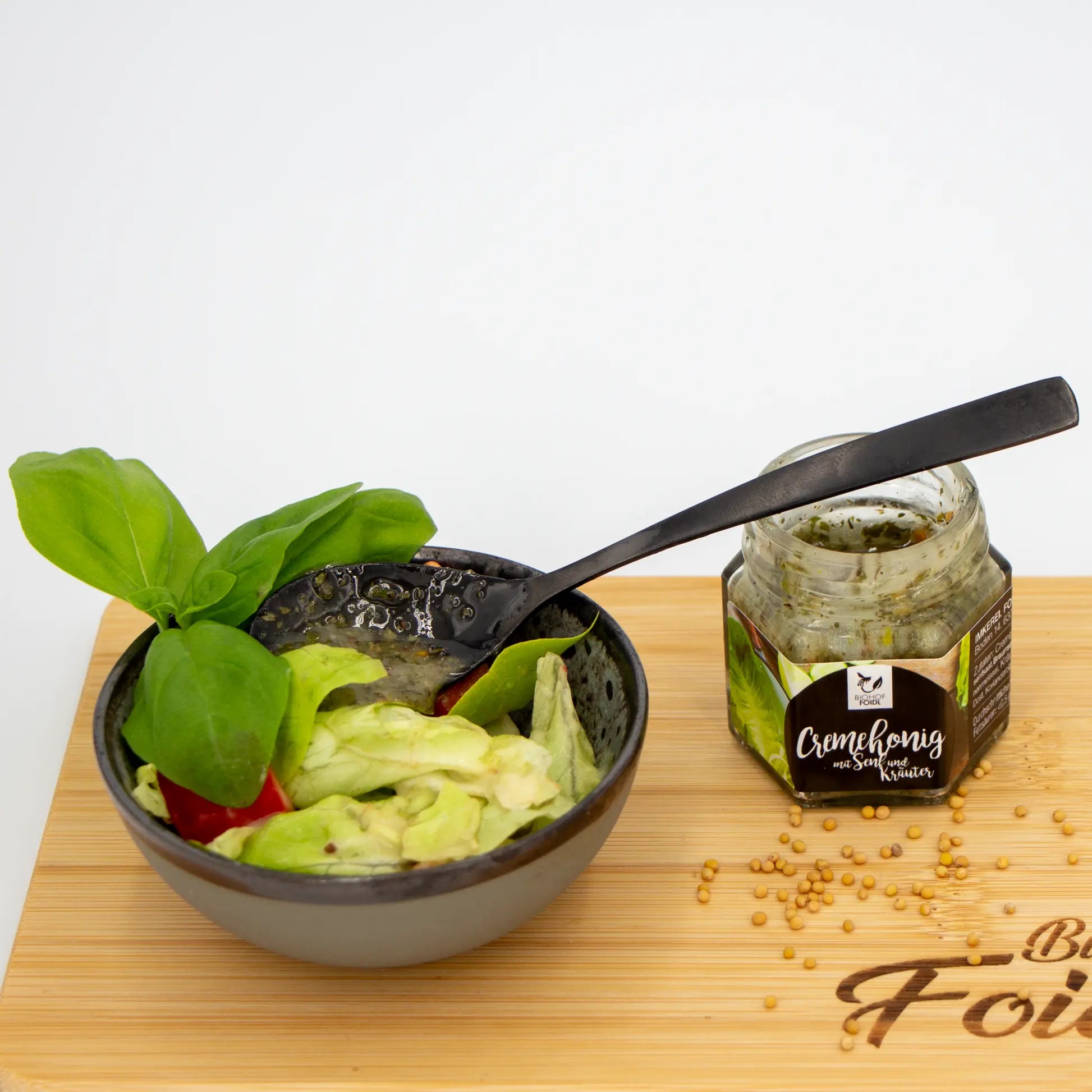Cremehonig mit Senf und Kräuter