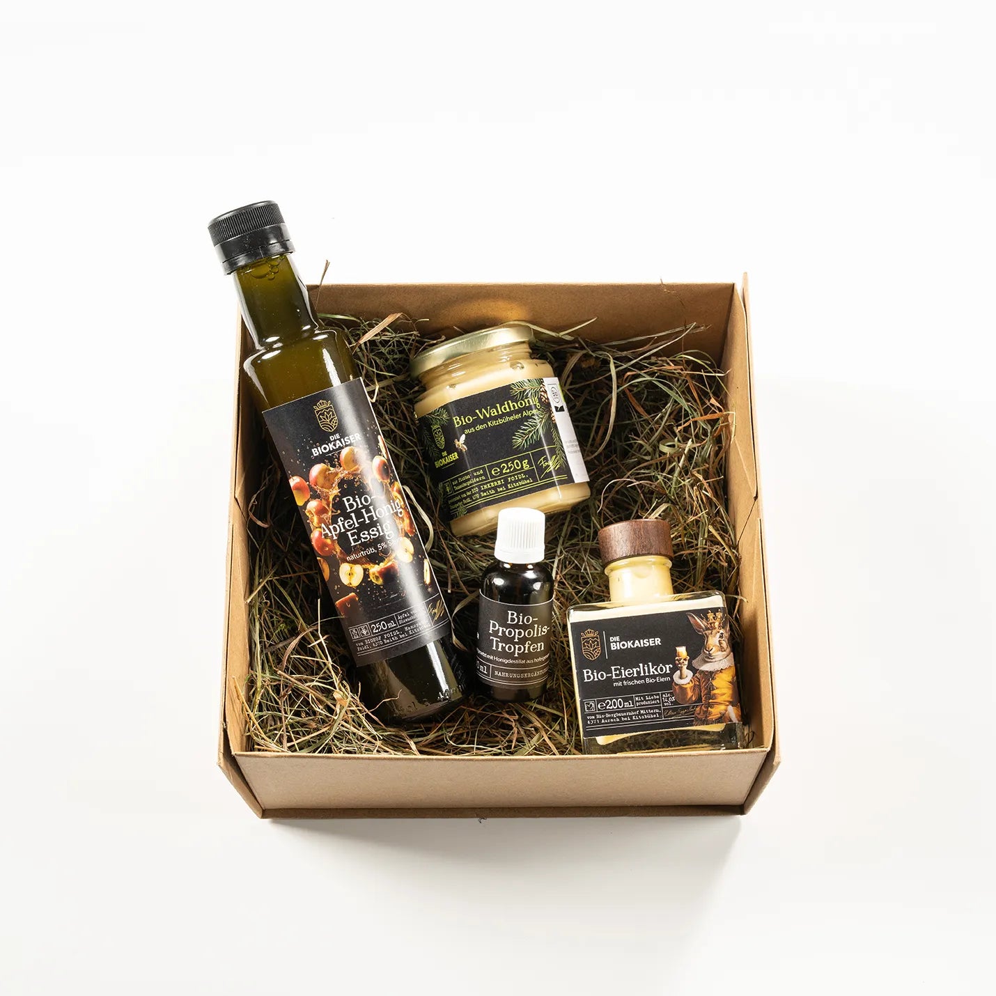 Eine Dosis "Heimat" für alle Fälle: Bio-Apfel-Honig-Essig, feiner Bio-Waldhonig, wohltuende Bio-Propolistropfen und cremiger Bio-Eierlikör direkt aus den Kitzbüheler Alpen – ein Tröpfchen in Ehren - ... hilft auch bei Heimweh ;-)